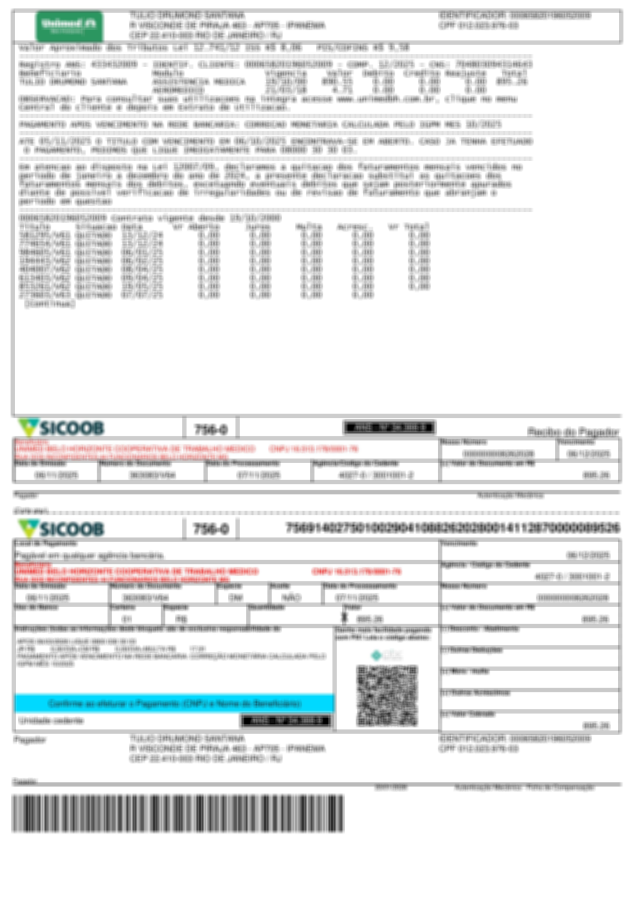 Verifique nessas telas se os dados do boleto estão corretos, principalmente o do beneficiário. No caso da Unimed-BH ele sempre será UNIMED BELO HORIZONTE COOPERATIVA DE TRABALHO MÉDICO CNPJ 16.513.178/0001-76.