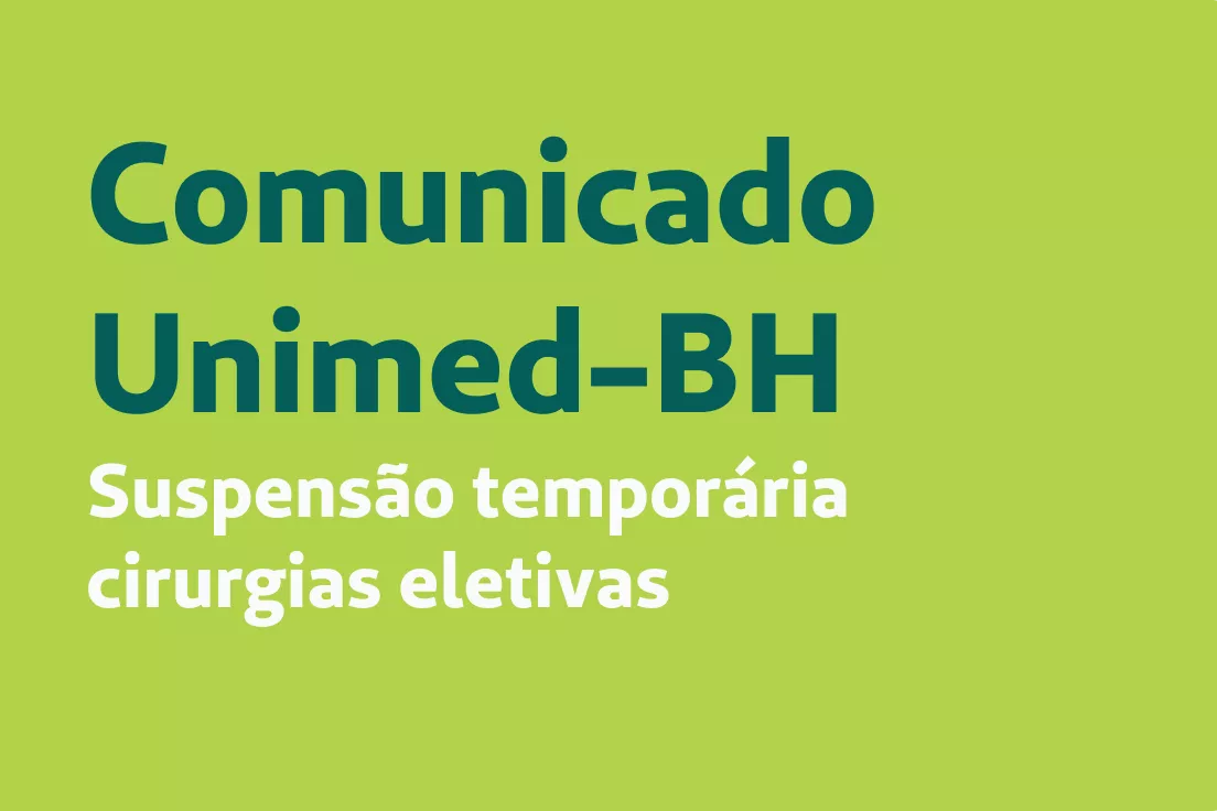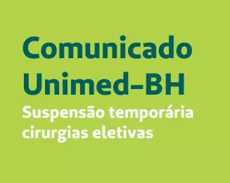 Tendo em vista os dados epidemiológicos de Belo Horizonte e Região Metropolitana, índice que tem sido monitorado diariamente pela Unimed-BH, informamos que, a partir desta segunda-feira, dia 08 de março de 2021, todas as cirurgia eletiva estarão suspensas por tempo indeterminado, exceto em doenças cardiovasculares e oncológicas. Os atendimentos de urgência continuam funcionando normalmente.