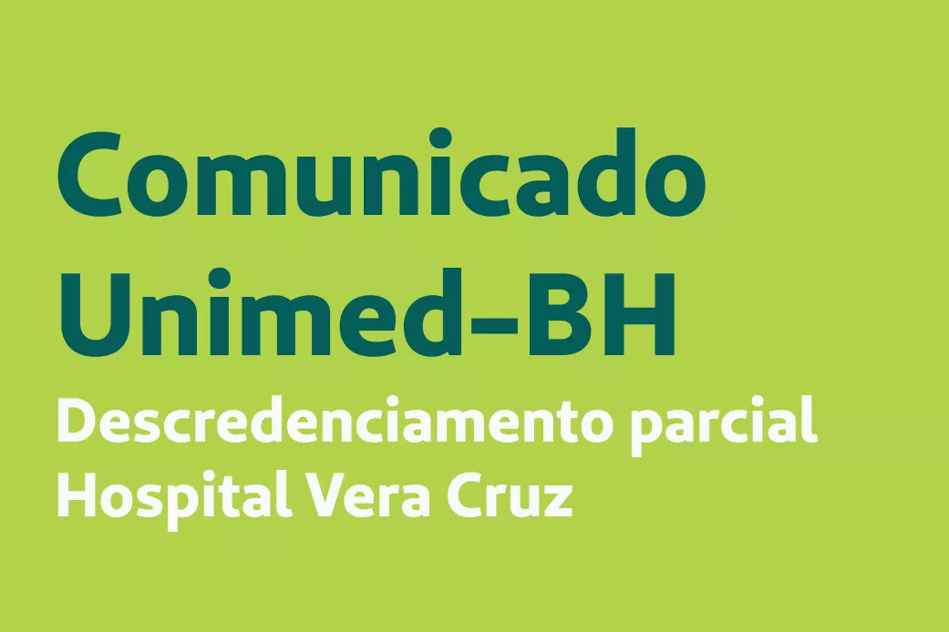 A UNIMED-BH esclarece aos seus clientes que o seu contrato com o Hospital Vera Cruz não foi extinto e que, a partir do dia 16 de outubro, apenas alguns procedimentos cirúrgicos e o pronto atendimento deixarão de fazer parte da sua rede hospitalar. A cooperativa informa que tem um relacionamento de longa data com o Hospital Vera Cruz e que cuidou de informar previamente a unidade.