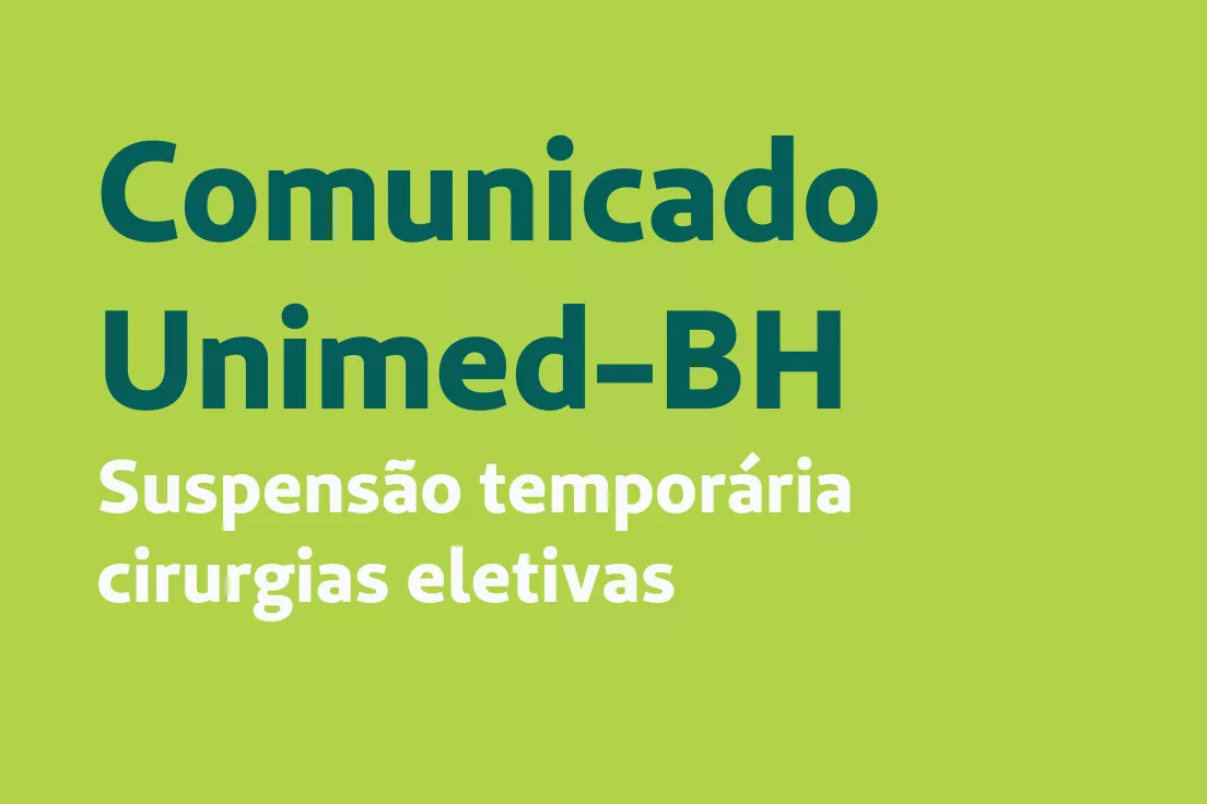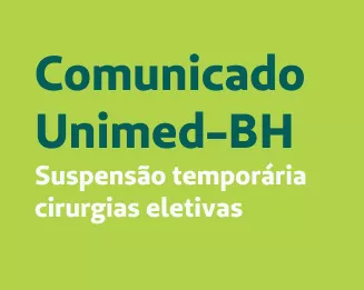 Nesse sentido, informamos que todas as cirurgias e os procedimentos eletivos ambulatoriais e hospitalares dos clientes Unimed-BH, independentemente da faixa etária, estarão suspensos em nossa rede a partir do dia 20 de março de 2021, sábado.